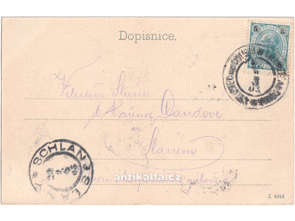 Chlumec nad Cidlinou. Technika kolorovaný světlotisk. Vydal Liška A., Chlumec 1903.