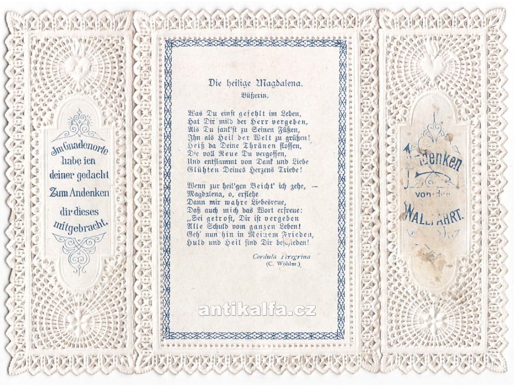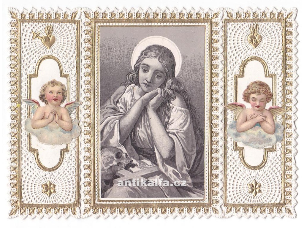 Die heilige Magdalena. Sklapovací trojdílná litografie aplikovaná na vykrajovanou zlacenou šablonu.