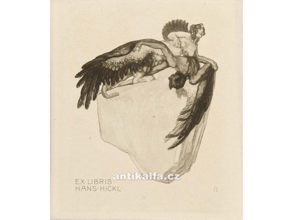 Ex-libris Hans Hickl. Autor Franz von Bayros, Technika heliogravura. Vydal Wolf Artur, Vídeň 1914.