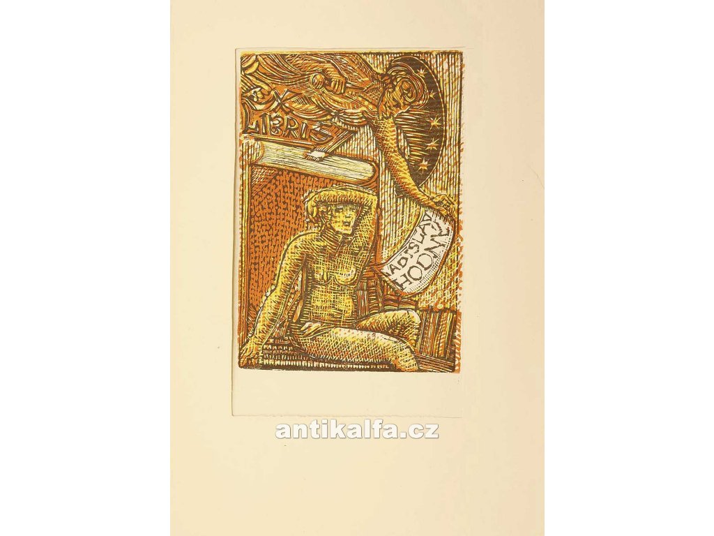 Ex Libris - Ladislav Hodný. Autor Josef Váchal. Dřevoryt, linoryt 1951.