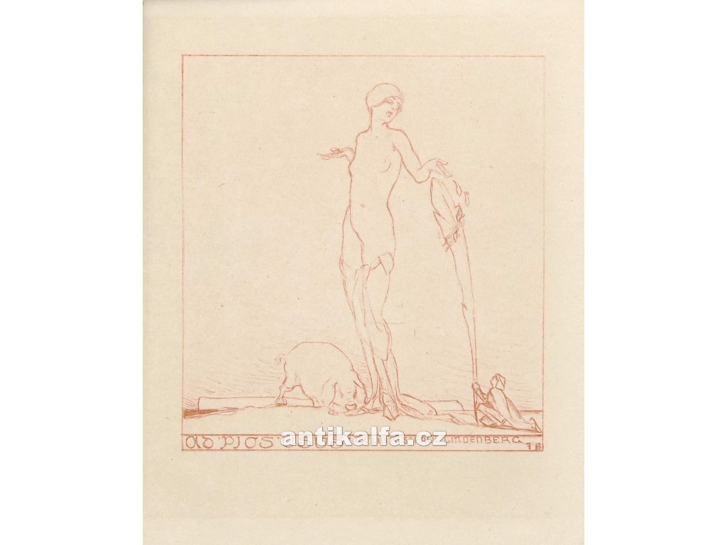 Ex-libris Paul Lindenberg. Autor Franz von Bayros, Technika heliogravura. Vydal Wolf Artur, Vídeň 1914.
