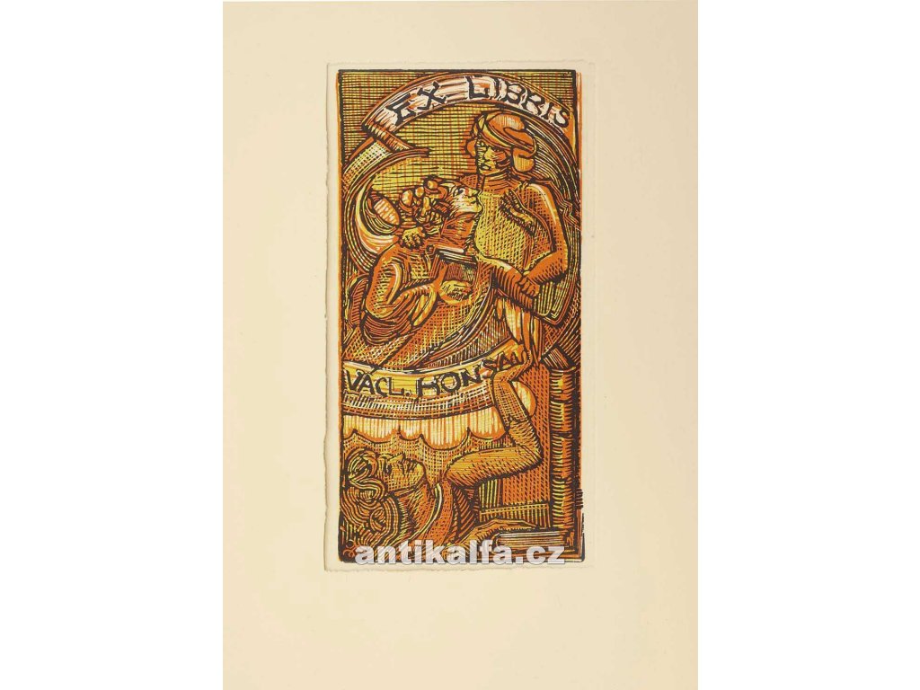 Ex Libris - Václav Honsa. Autor Josef Váchal. Dřevoryt, linoryt 1951.