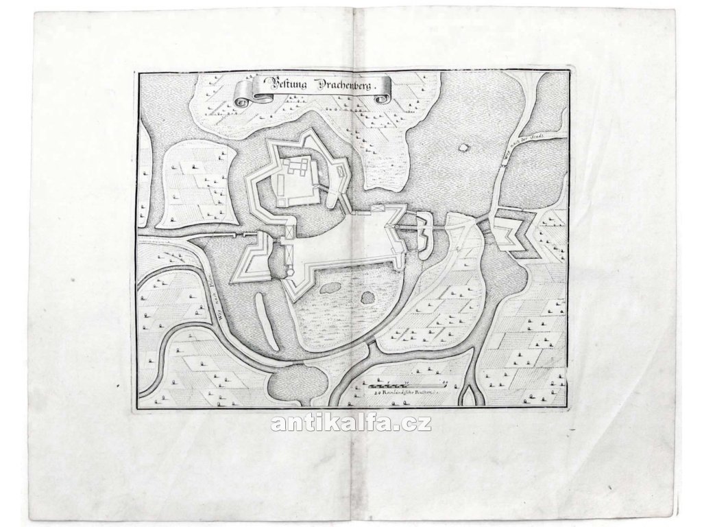 Festung Prachenberg. Topographia Bohemiae, Moraviae et Silesiae.Vydal Merian Matthäus, Franckfurt 1650.