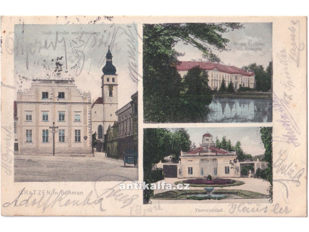 Gratzen in Böhmen - Nové Hrady. Technika kolorovaný světlotisk. Vydal Martetschläger J., 1906.