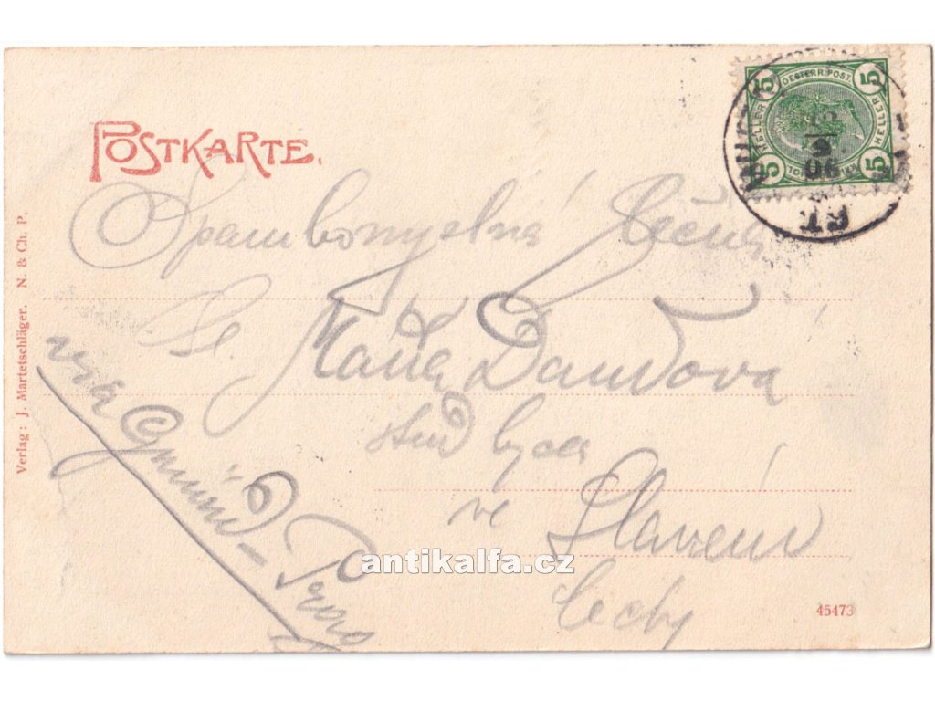 Gratzen in Böhmen. Technika kolorovaný světlotisk. Vydal Martetschläger J., 1906.