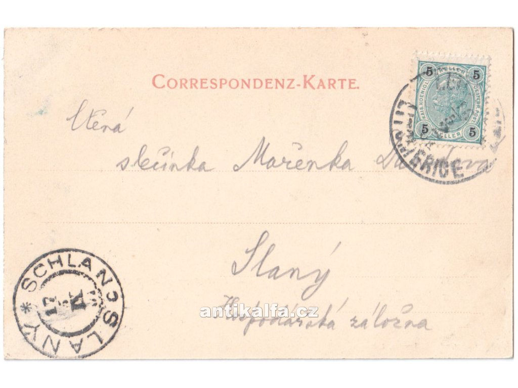 Gruss aus dem Elbethal. Technika kolorovaný světlotisk. Vydal Teweles S., Leitmeritz, 1901.