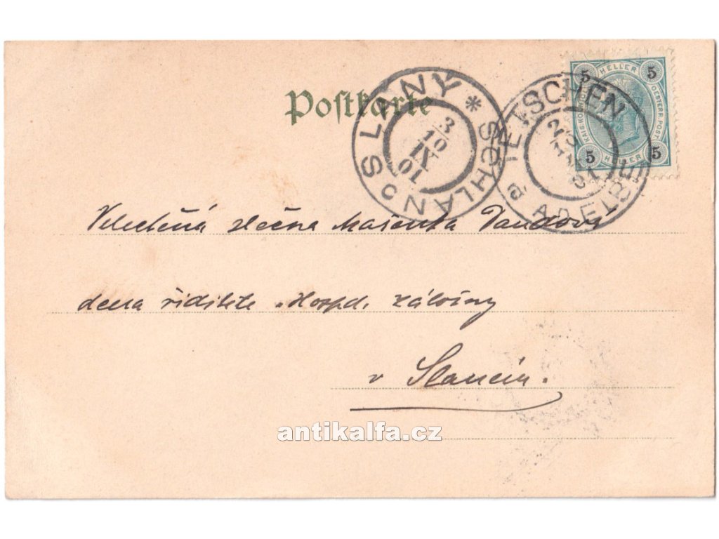 Gruss aus Tetchen. Technika kolorovaná litografie. Vydal Sperl & Seidel, Tetschen a. Elbe 1901.