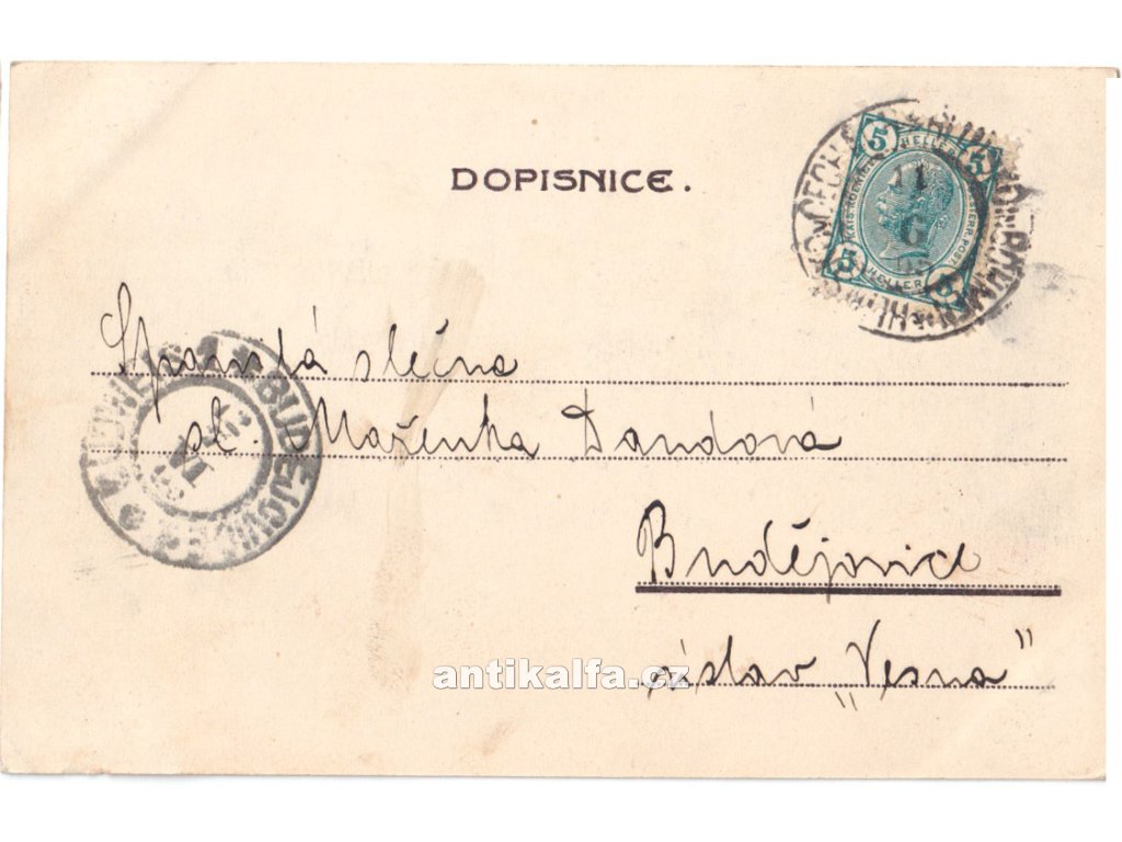 Hlinsko. Technika kolorovaná litografie. Vydal Červenka A., Hlinsko, 1905.