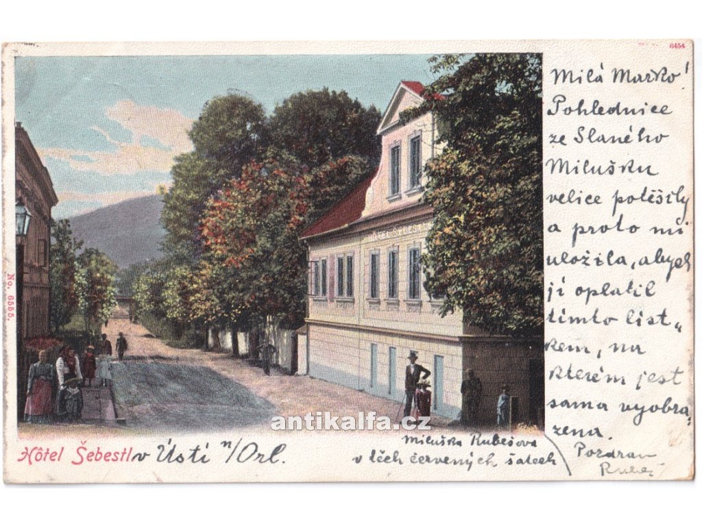 Hotel Šebestl. Technika kolorovaná litografie. 1901.