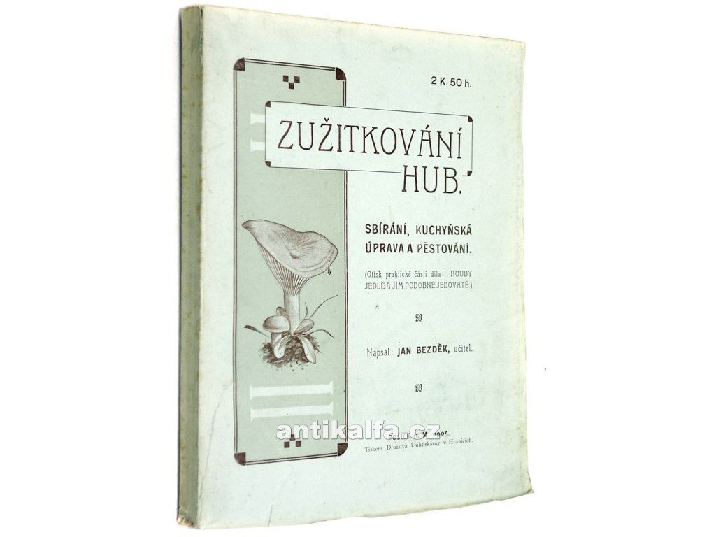 Zužitkování hub. Sbírání, kuchyňská úprava a pěstování. Houby jedlé a jim podobné jedovaté II. Autor Jan Bezděk. Vydalo Jan Bezděk, Praha 1905 .