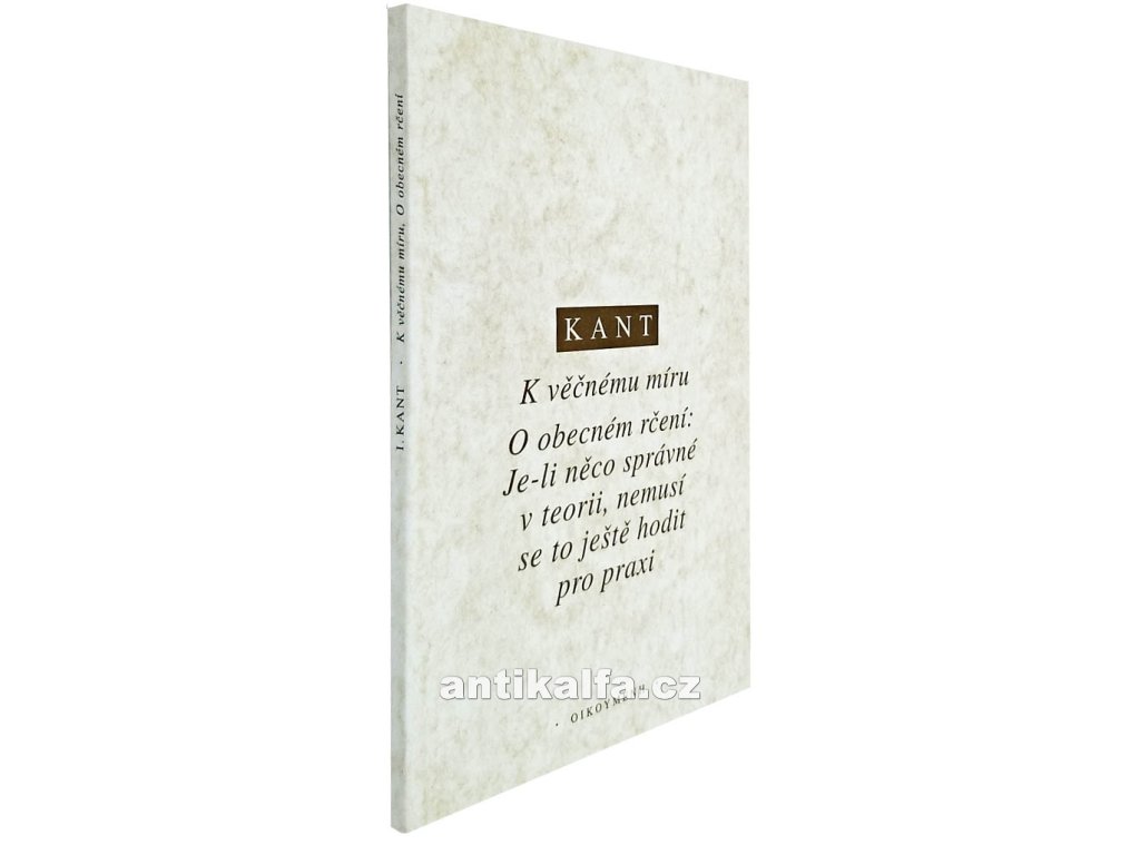 K věčnému míru : filosofický projekt ; O obecném rčení: Je-li něco správné v teorii, nemusí se to ještě hodit pro praxi. Autor Kant Immanuel. Vydalo nakladatelství Oikoymenh, Praha 1999.