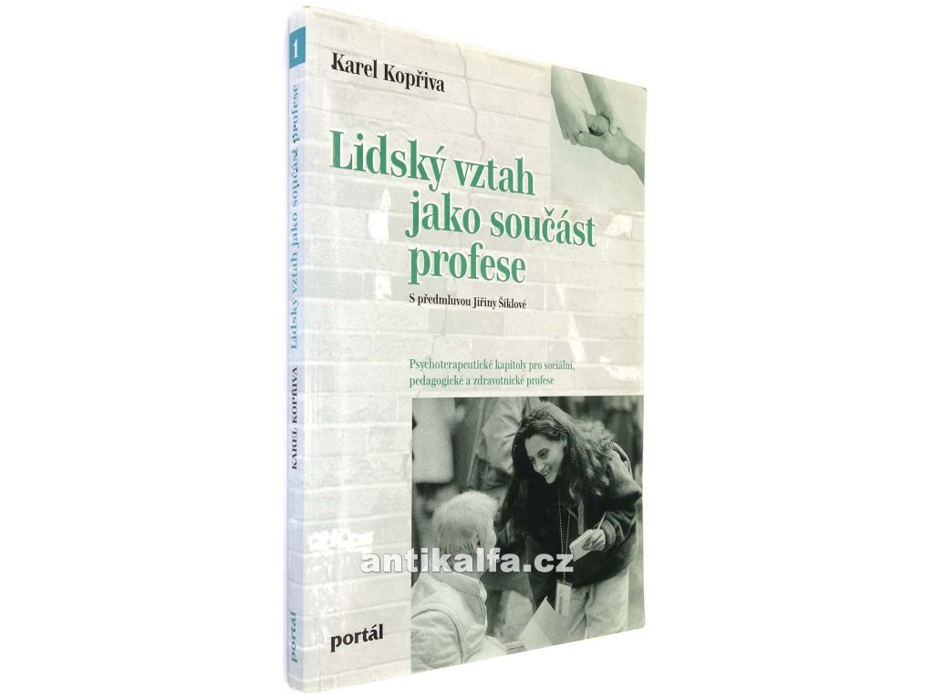 Lidský vztah jako součást profese: psychoterapeutické kapitoly pro sociální, pedagogické a zdravotnické profese. Autor Kopřiva Karel. Vydalo nakladatelství Portál, Praha 1997.