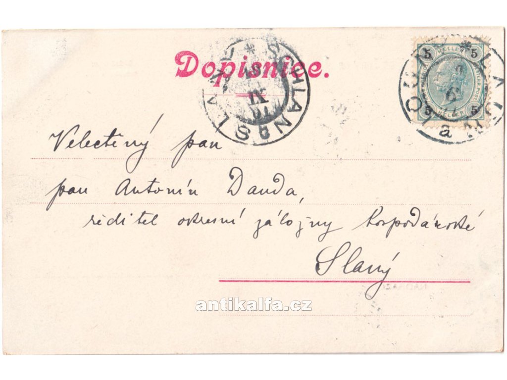 Pozdrav z Loun! Technika světlotisk. Vydal Venta Th., Louny, 1901.