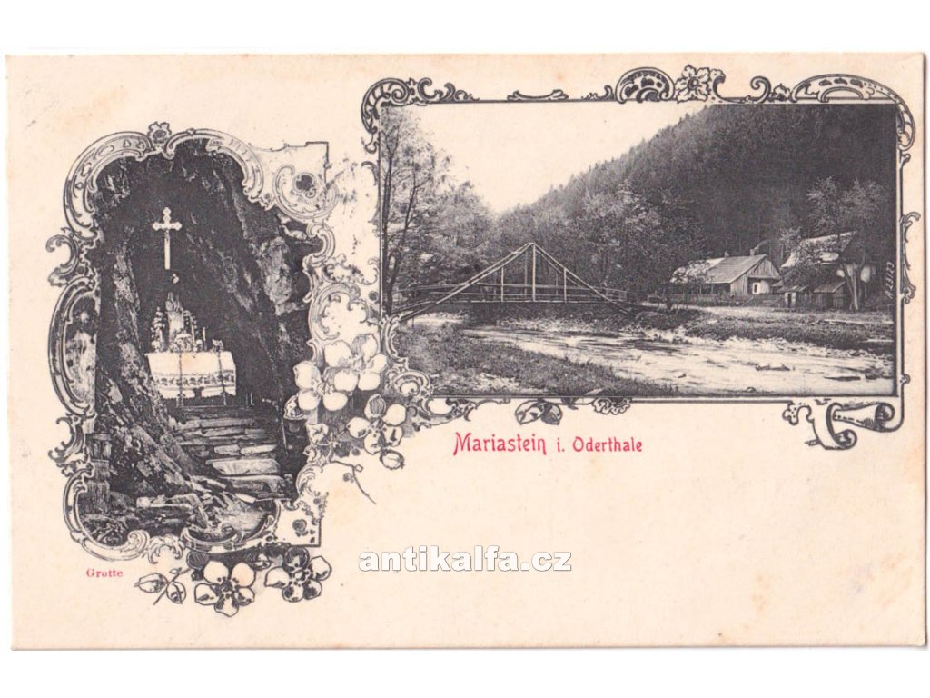 Mariastein i. Oderthale. Panna Maria ve Skále - údolí řeky Odry u obce Spálov. Technika ofset. 1906.