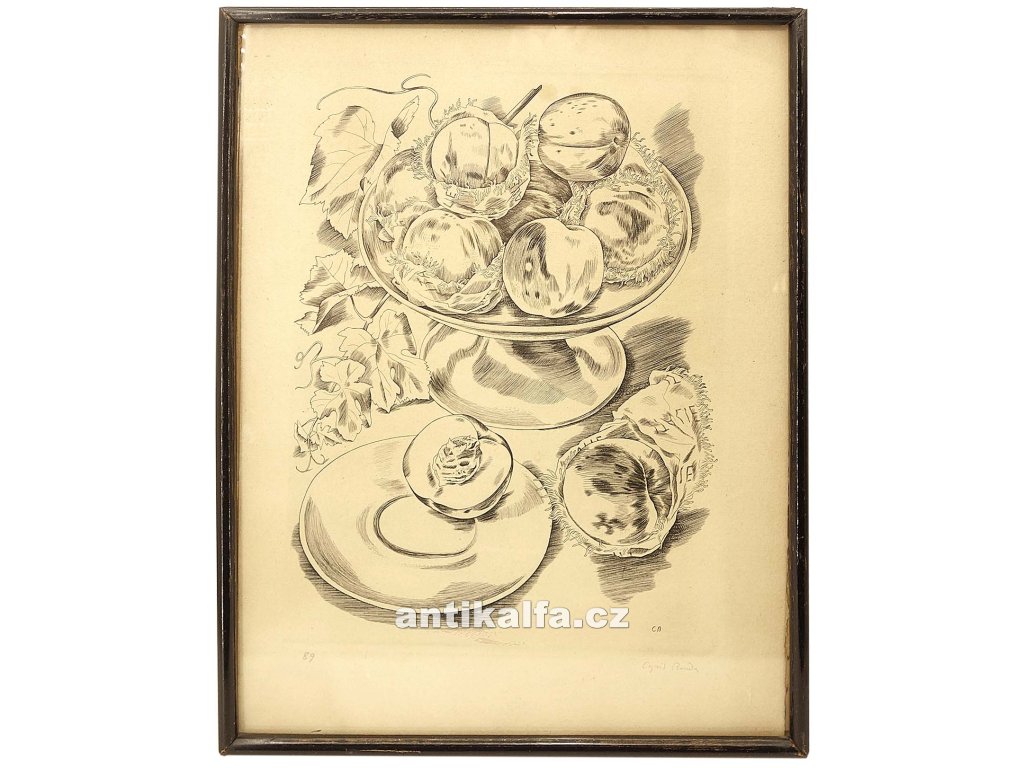 Plumlovský zámek. Autor Bouda Cyril. Signovaná mědirytina. Adjutace.