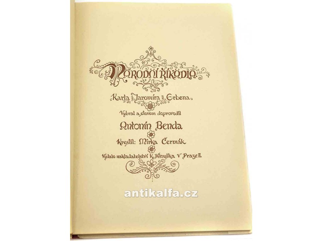 Národní říkadla Karla Jaromíra Erbena. Autor Erben Jaromír Karel. Slovem doprovodil Antonín Benda, ilustrace Mirka Čermák. Vydal Hloušek K., Praha 1941.