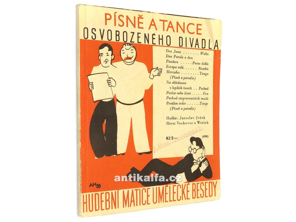 Písně a tance Osvobozeného divadla. Autor Ježek Jaroslav, Voskovec Jiří, Werich Jan. Vydala Hudební matice Umělecké besedy, Praha 1931.