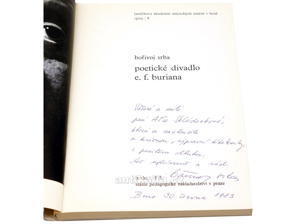 Poetické divadlo E. F. Buriana. Autor Bořivoj Srba. Vydalo Státní pedagogické nakladatelství, Praha 1971.