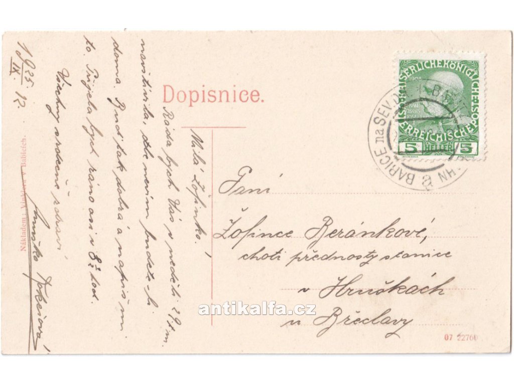 Pozdrav z Babic. Technika světlotisk. Vydal Vinkler, Babice, 1912.