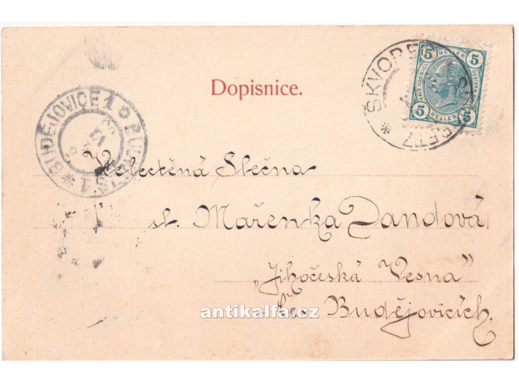 Pozdrav z Doubravčic. Technika světlotisk. Vydal Podlipný Alois, Český Brod, 1901.