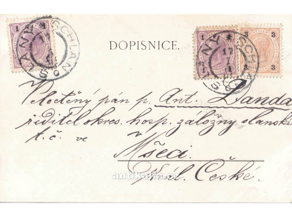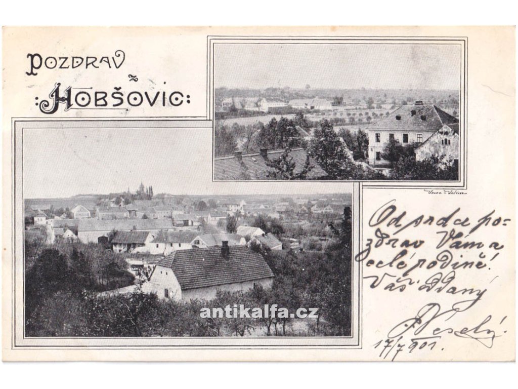 Pozdrav z Hobšovic. Technika světlotisk. Vydal Unie Vilém, 1901.