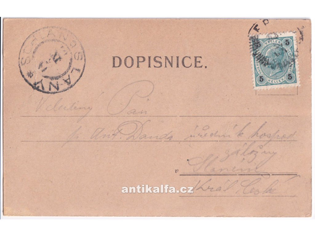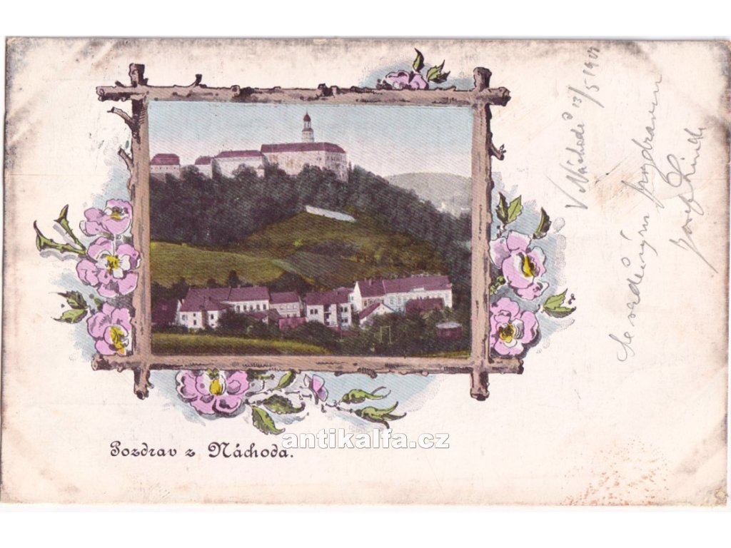 Pozdrav z Náchoda. Technika kolorovaná litografie. Náchod1901.