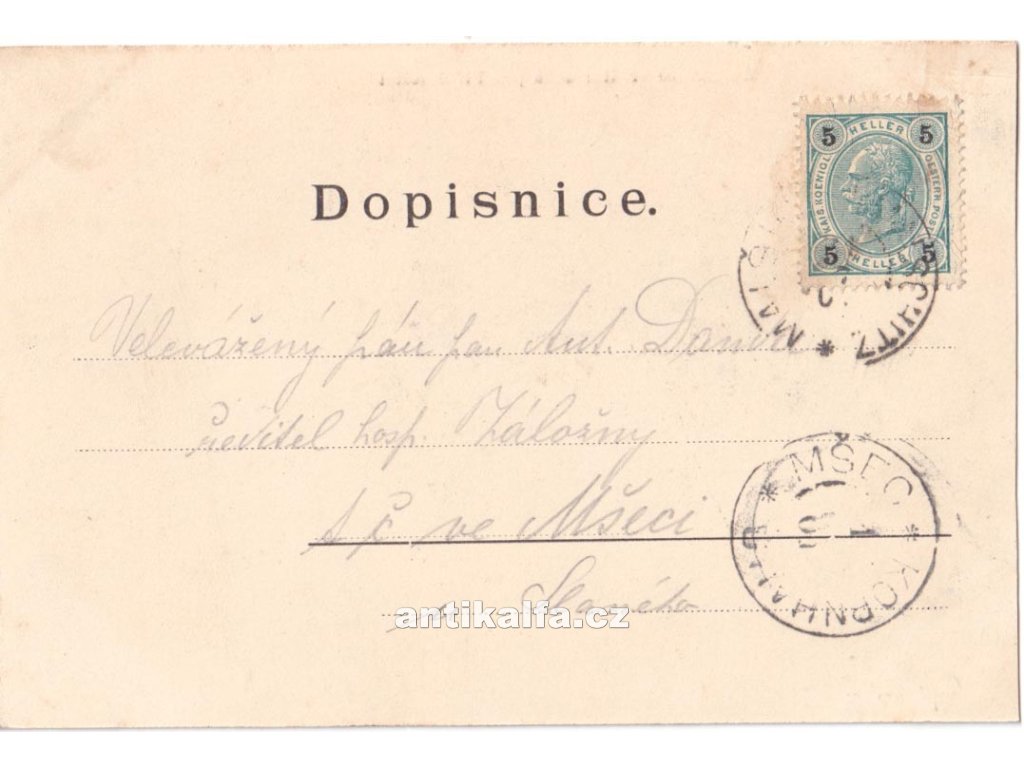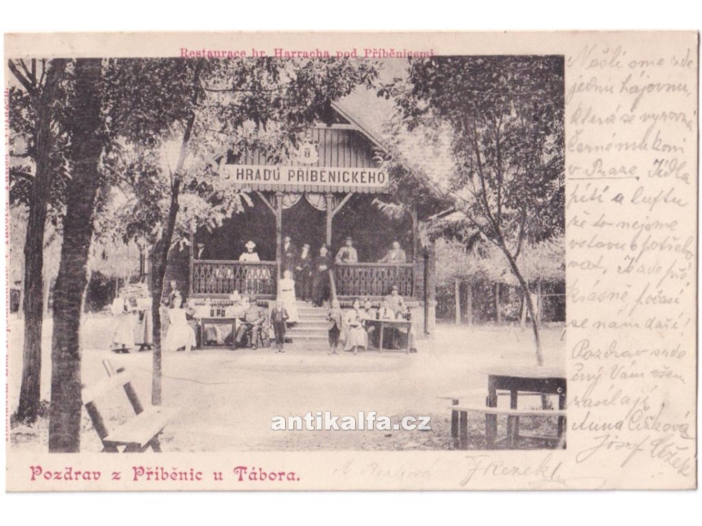 Pozdrav z Příběnic u Tábora. Technika světlotisk. Vydal Nepomucký M., Tábor, 1901.
