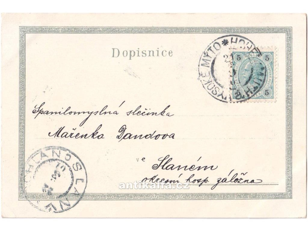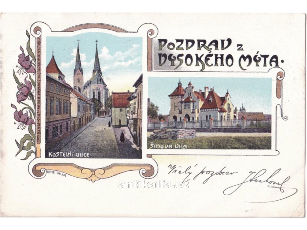 Pozdrav z Vysokého Mýta. Technika kolorovaná litografie. Vydal XXX, 1901.