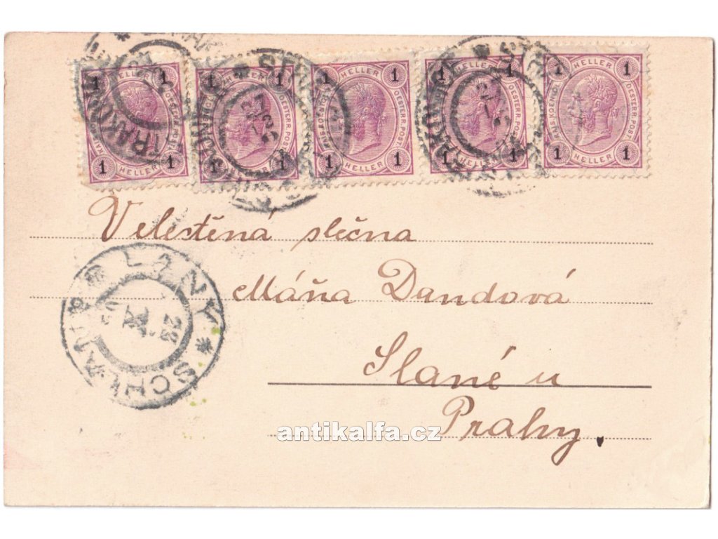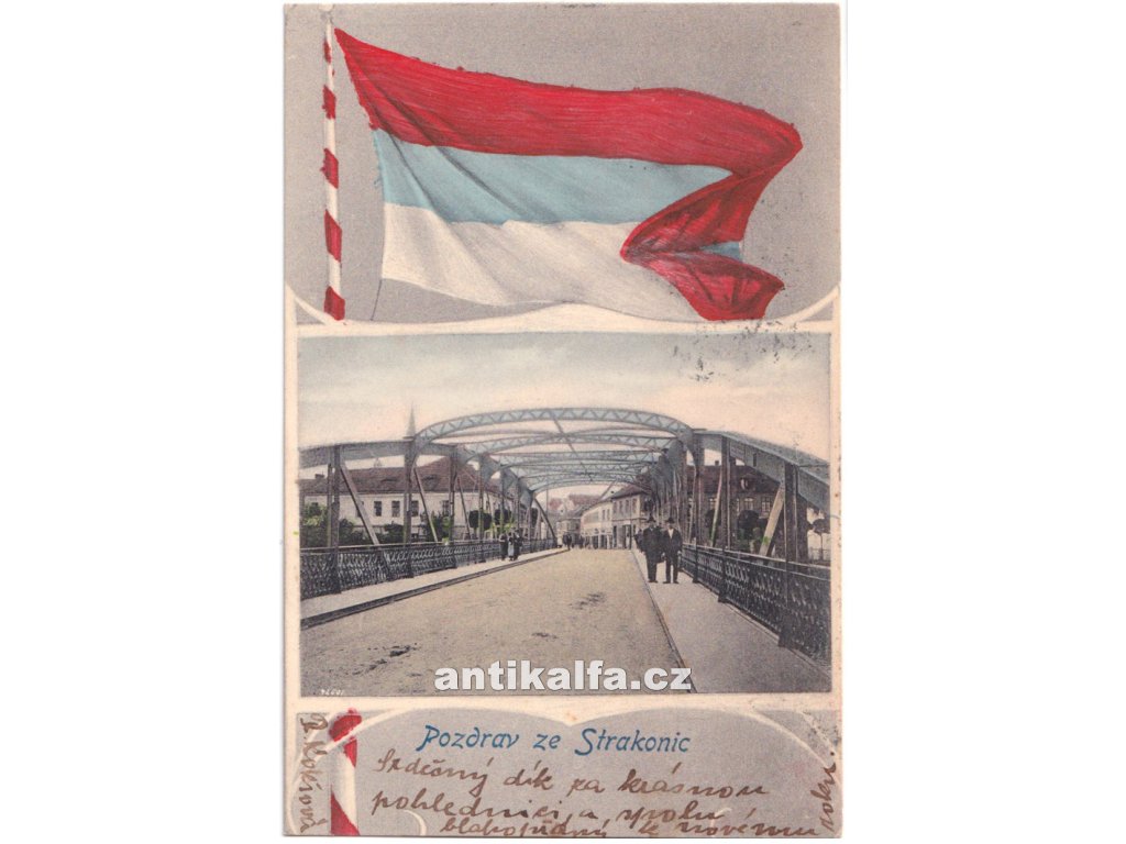 Pozdrav ze Strakonic. Technika kolorovaná litografie. 1905.