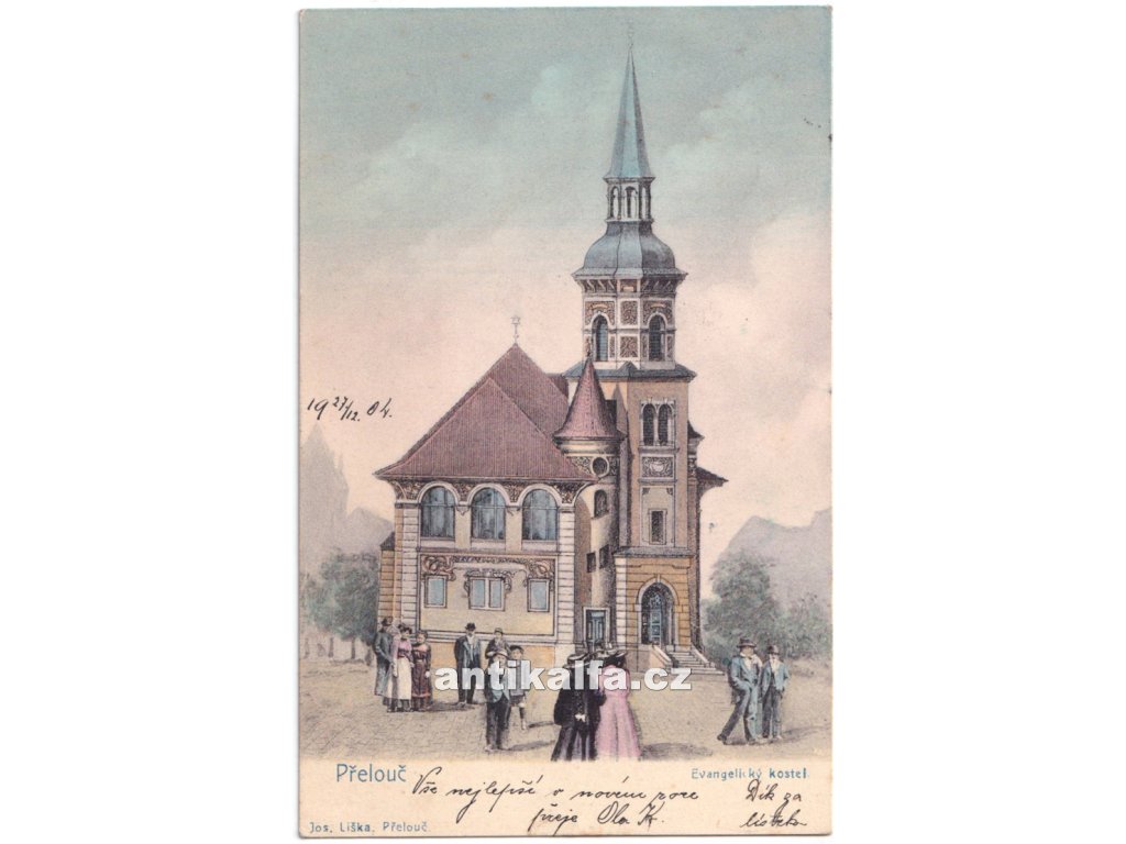 Přelouč. Technika kolorovaný světlotisk. Vydal Liška Josef, Přelouč, 1904.