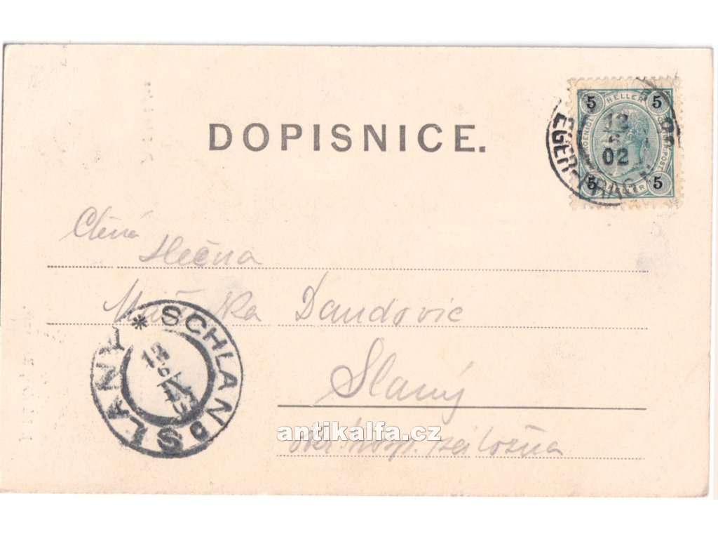 Rakovník. Technika kolorovaná litografie. Vydal Růžička Jean, Rakovník, 1903.