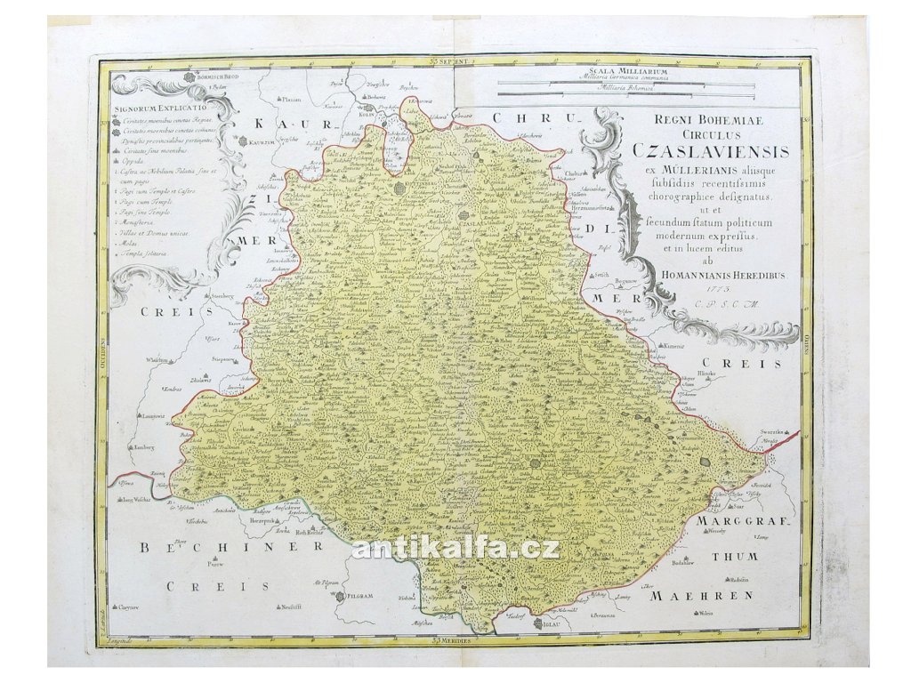 Regni Bohemiae Circulus Czaslaviensis ex Müllerianis aliisque subsidiis recentissimis chorographice designatus, ut et secundum statum politicum modernum expressus, et in lucem editus ab Homannianis Heredibus. 1773.