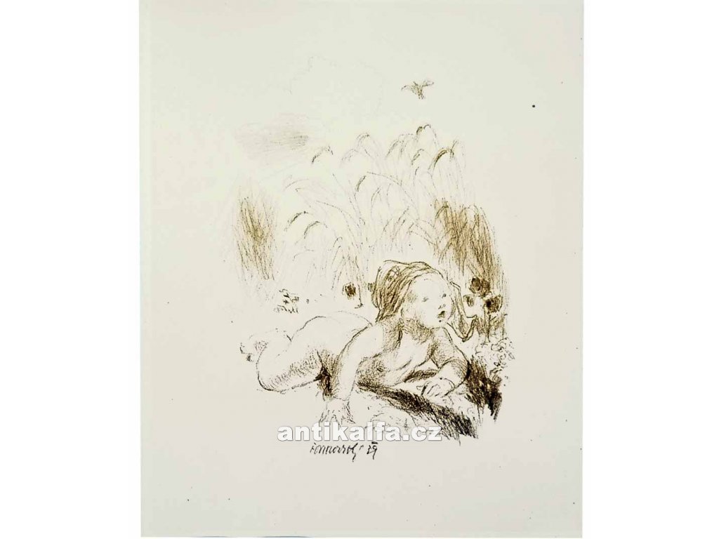Roztomilost. Autor Jakub Obrovský. Litografie, signováno v tisku. Vydal SVUM Hodonín 1939.
