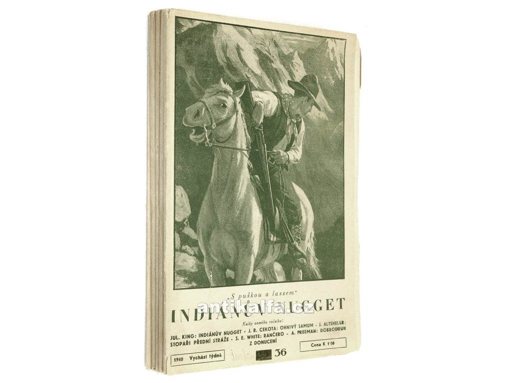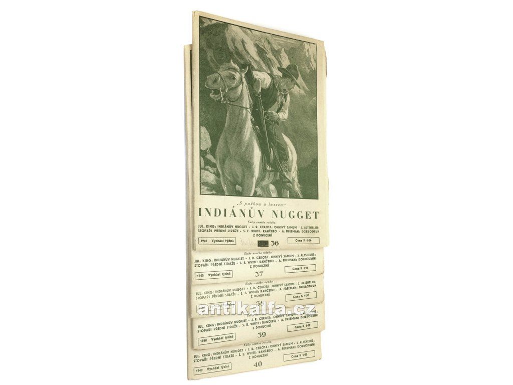 Šarkán - Román divokého koně. (Obálky; Indiánův nuget). Komplet 5 sešitů č. 36-40. Autor Kovář Josef. Ilustrace Zdeněk Burian. Vydal Toužimský a Moravec, Praha 1940.