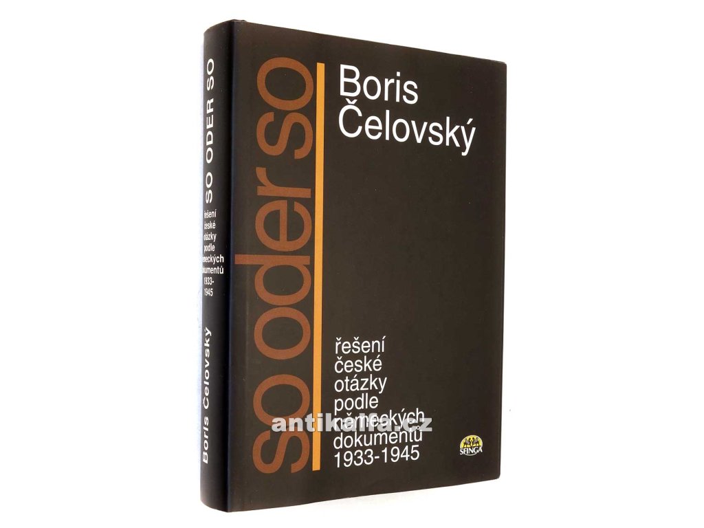 So oder so : řešení české otázky podle německých dokumentů 1933-1945. Autor Boris Čelovský. Vydalo nakladatelství Sfinga, Praha 1995.