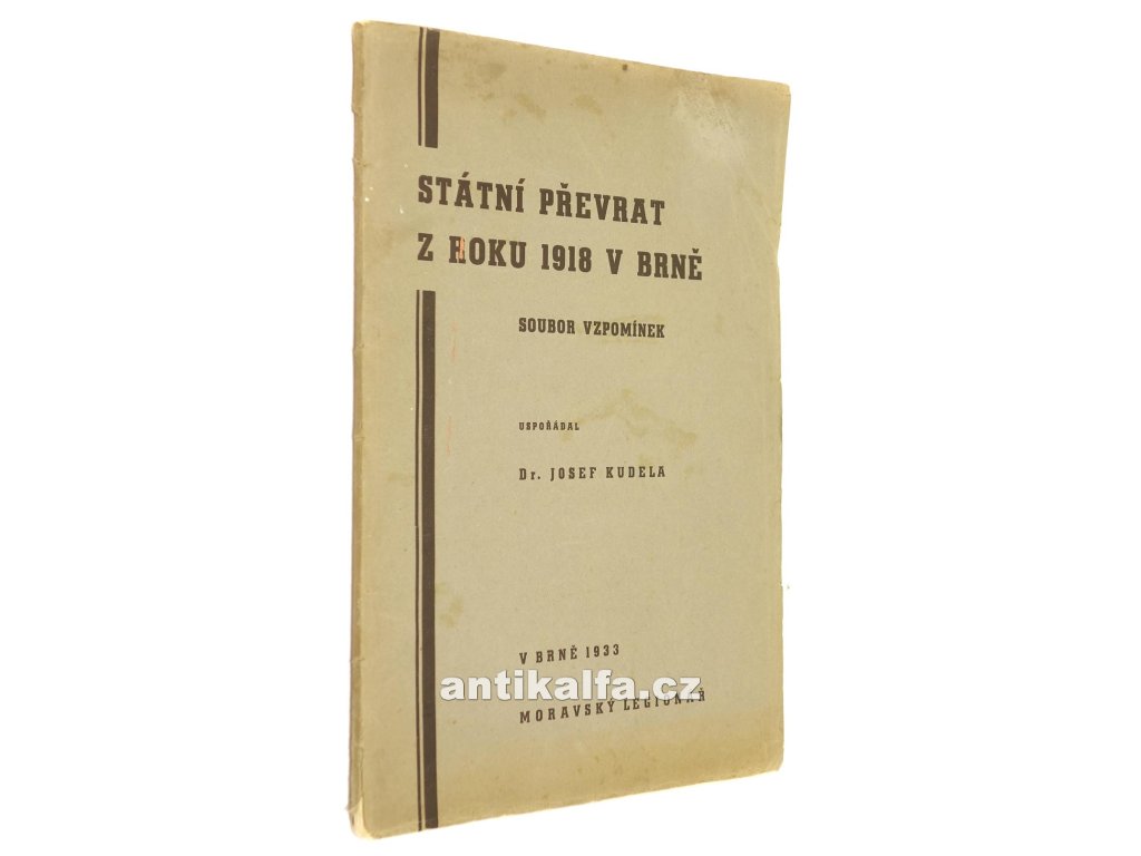 Státní převrat z roku 1918 v Brně : soubor vzpomínek. Autor Josef Kudela. Vydalo nakladatelství Moravský legionář, Brno 1933.