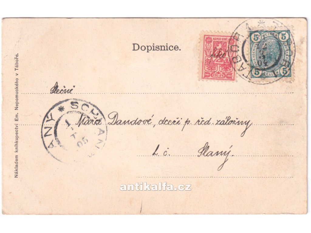 Tábor. Technika kolorovaná litografie. Vydal Nepomucký Emil, Tábor, 1901.