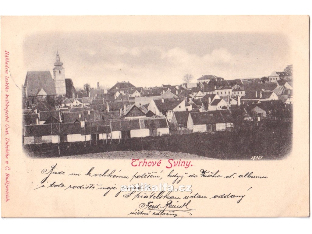 Trhové Sviny. Technika světlotisk. Vydal Dubský Gustav, České Budějovice, 1901.