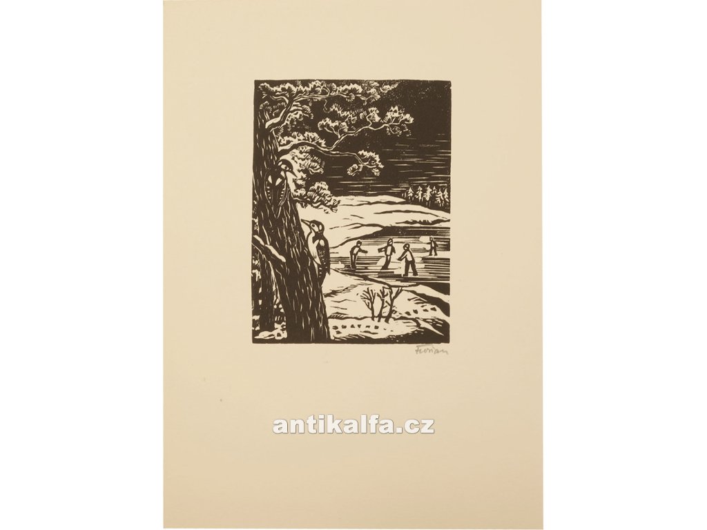 Z krajiny mládí Vysočiny milované. 4x signovaný linoryt. Autor Michal Florian.