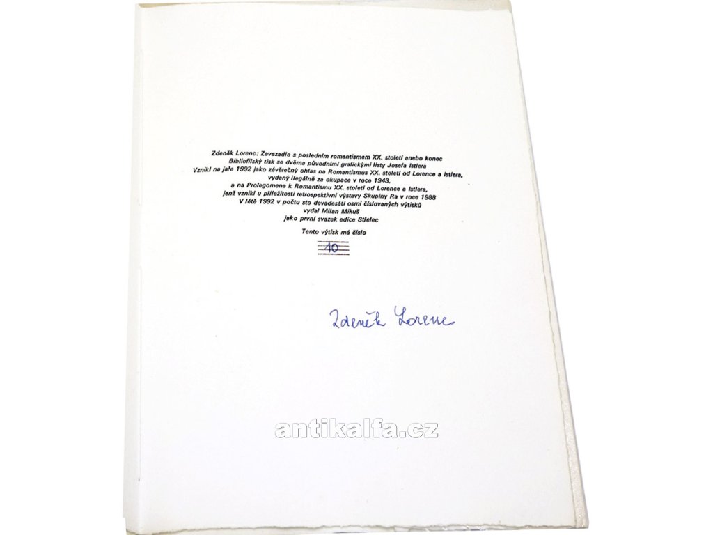 Zavazadlo s posledním romantismem 20. století anebo konec. Autor Lorenc Zdeněk. Vydal Milan Mikuš, Praha 1992.