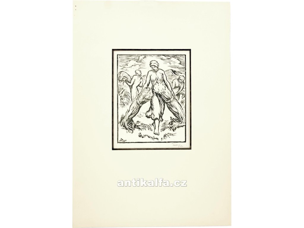 Žně. Autor Václav Rabas. Signovaný dřevoryt. Vydavatel Galerie moderního umění v Roudnici nad Labem 1920.